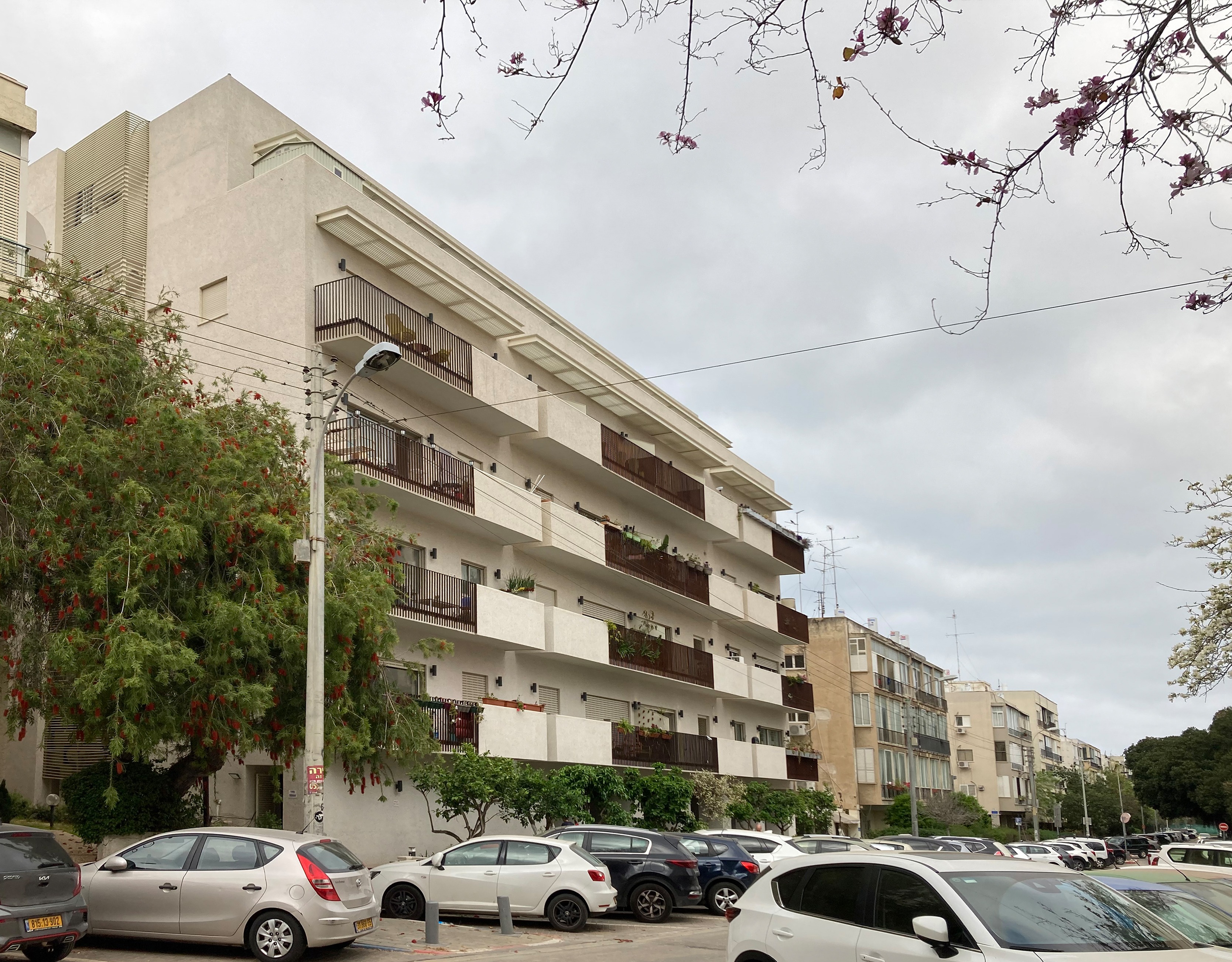 תוספת בנייה של 2 קומות על גבי בניין הכולל 4 קומות שהורחבו במסגרת הפרויקט הבניין המקורי נבנה ב 1950 וכלל 18 דירות הבניין החדש כולל 27 דירות ומתקן חנייה אוטומטי